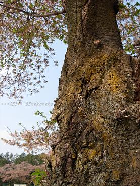 桜の木の下へ カメラを持ってしゃがみこんでいました。