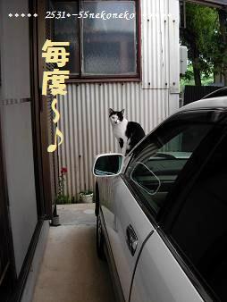 波板のウチ側を箒で掃いていると ダッシュで寄って来て